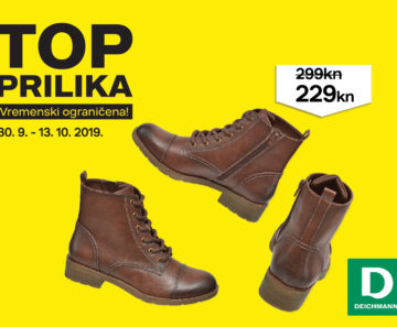 Top prilika u Deichmannu od 30. 9. – 13. 10. 2019. Vremenski ograničena! Širok izbor obuće po top cijenama! Akcija