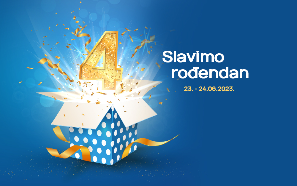 Povodom 4. rođendana Vašeg omiljenog trgovačkog centra, pripremili smo Vam punooo zabavnog programa, poklona iznenađenja i pogodnosti. Nemojte propustiti našu rođendansku tortu i dječje predstave. Oslikavanje lica za najmlađe posjetitelje i one koji se još uvijek osjećaju mladima 😊.
