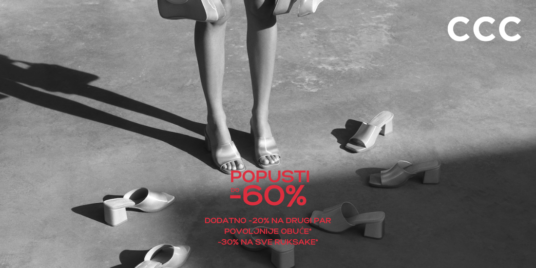 U CCC trgovinama popust do -60% se nastavlja! Ne možeš se odlučiti? Ne moraš! Kupi jedan par po želji i drugi par uz dodatnih 20% na povoljniji par sandala, japanki, espadrila i odabranih balerinki, vrijedi i na već snižene artikle. A ako ti to nije dovoljno, iskoristi dodatno 30% popusta na trendi ruksake za ljetne avanture (uz kupnju artikla po izboru iznad 99kn). Čekamo te!*