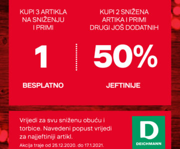 Akcija traje od 25.12. -17.1. 2021. A sve snižene artikle možete pronaći na link: Deichmann.com