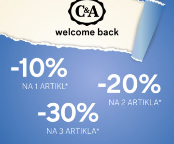 C&A ima “Welcome back” popuste: -10% na 1 artikl -20% na 2 artikla -30% na 3 artikla Popust se obračunava