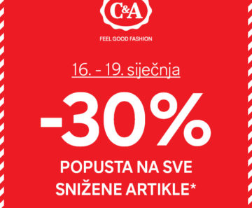 Od 16. – 19. siječnja u C&A prodavaonicama iskoristite -30% popusta na sve snižene artikle. Više informacija na: www.c-i-a.hr