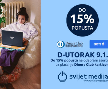 Iskoristite do 15% popusta na odabrani asortiman uz plaćanje Diners Club karticom uz mogućnost plaćanja do 36 rata: 15% popusta