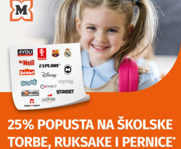 Do 20.08.2022. iskoristite akciju 25% na školske torbe, ruksake i pernice.**Popust se oduzima neposredno na blagajni uz predočenje kupona koji
