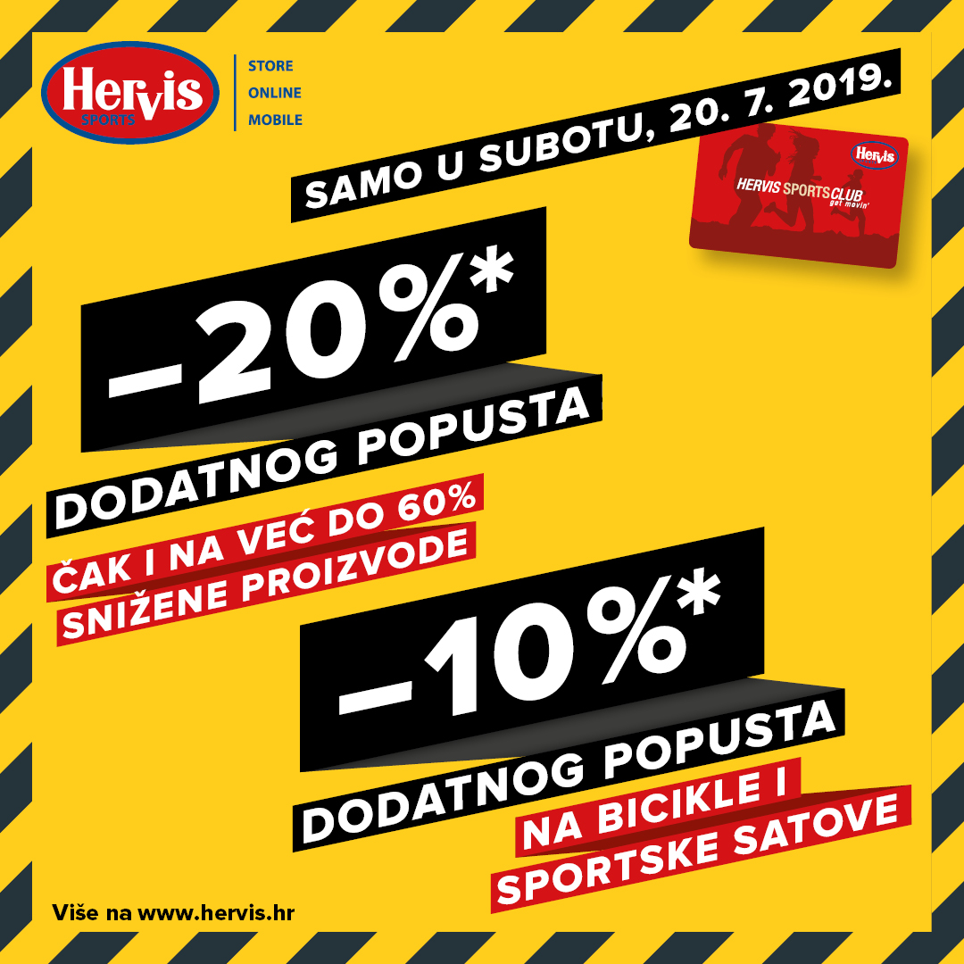 Samo u subotu, 20. srpnja – 20% dodatnog popusta na već snižene proizvode i 10% dodatnog popusta na bicikle i sportske satove.