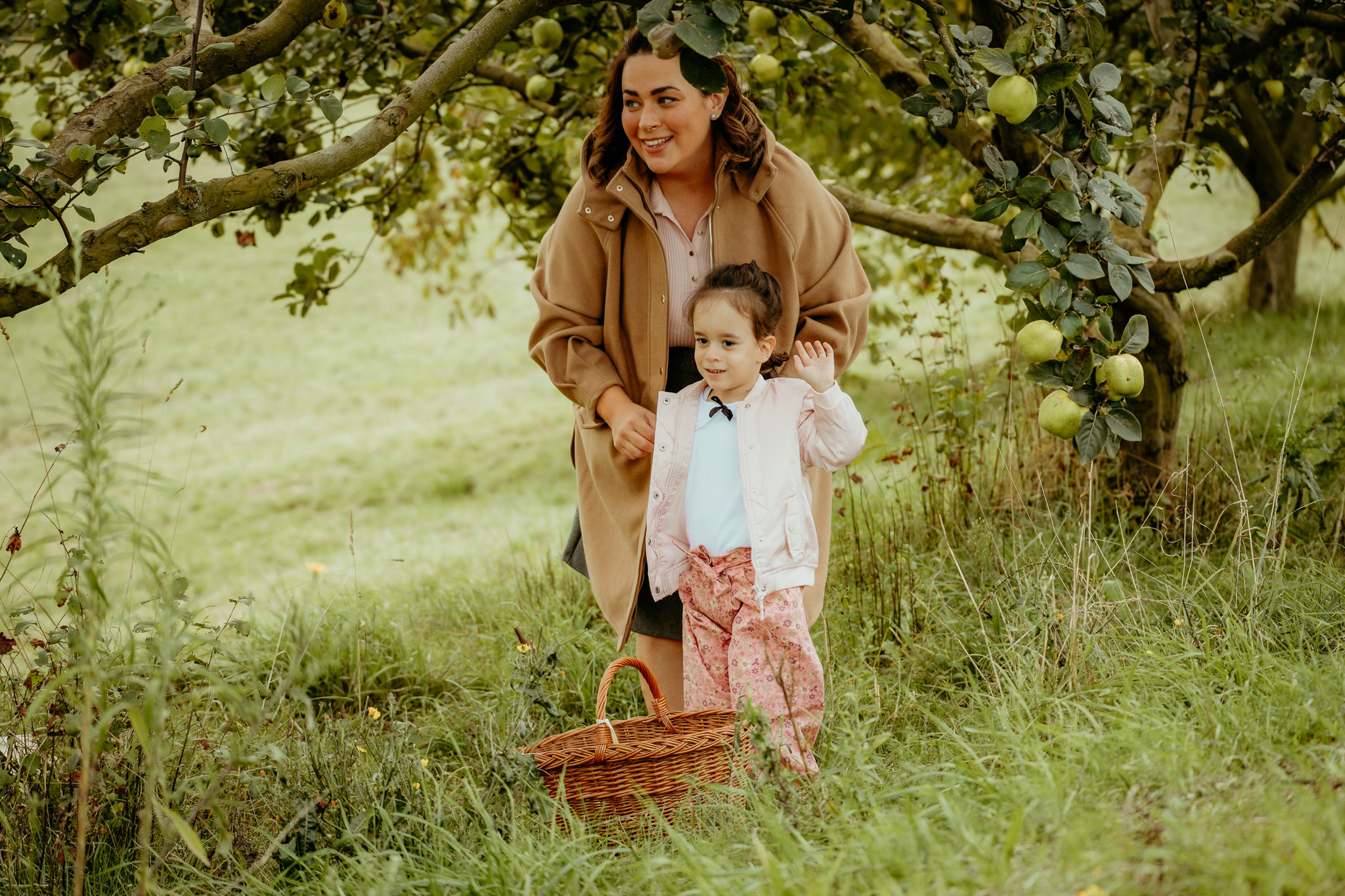 Druga je modna kombinacija bila inspirirana suhom travom, te smo htjeli outfit koji će se istaknuti i boje koje će biti dovoljne da se bore protiv suhoće i jednoličnosti jeseni i zime. Stoga smo u trgovini C&A odabrali djevojčici prekrasne pamučne hlače u burgundij boji, koje smo spojile s trakom za kosu u istoj boji i bijelom pamučnom majicom s volanima na ramenima i laganim uzorkom u jednakim burgundij – smeđim nijansama – cvijetićima, lišću i gljivama – nečemu što vrišti ‘jesen’. Ovo je prava kombinacija za djevojčice koje su puno u pokretu, jednostavna a preslatka. Mami smo, uz već spomenut prekrasan kaput, odabrali haljinu na preklop u malo žarkijoj burgundij boji, od udobnog muslin materijala koju možete nositi na posao, na kavu s prijateljicama, u grad ili šetnju uz more. Moderne mame znaju da je najvažnija udobnost i nosivost, pa ako odabraju ovu kombinaciju u našoj trgovini C&A, neće pogriješiti.