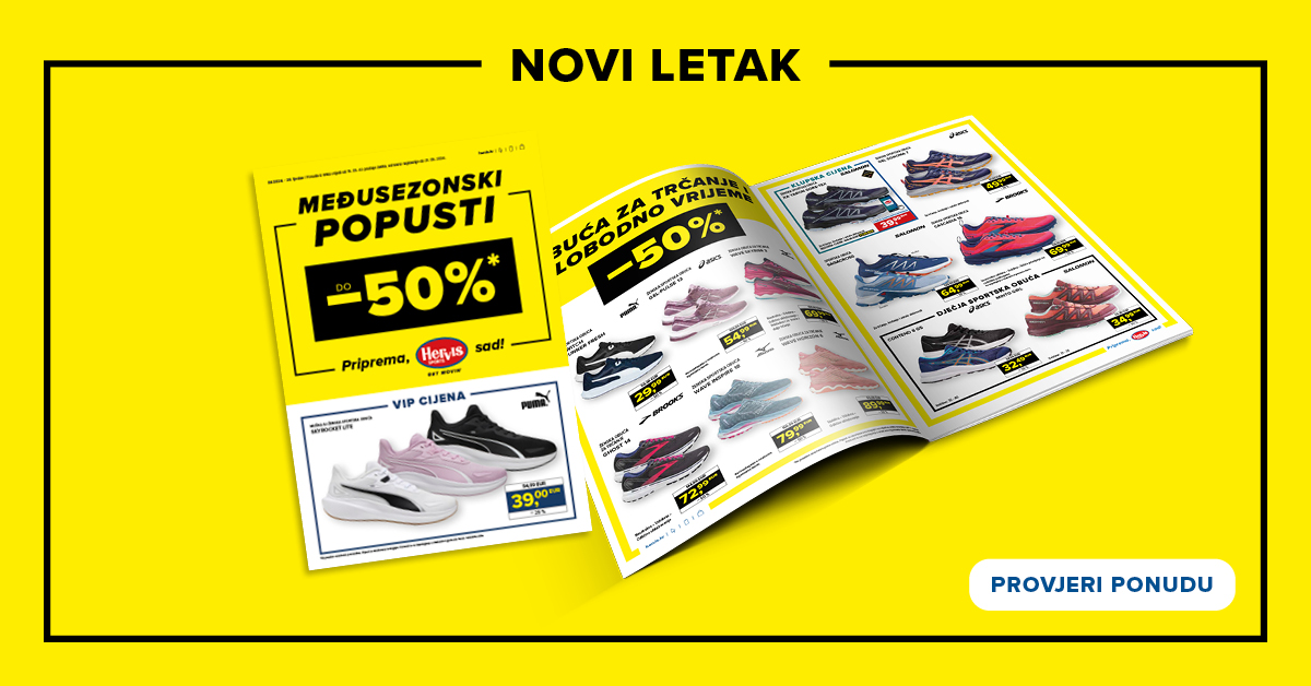 Novi letak u Hervis trgovini! svibanj 15, 2024 Novosti Potraži najnoviji Hervis letak i iskoristi međusezonske popuste i do -50%. Ponuda vrijedi od 15.05.- 21.05.2024.