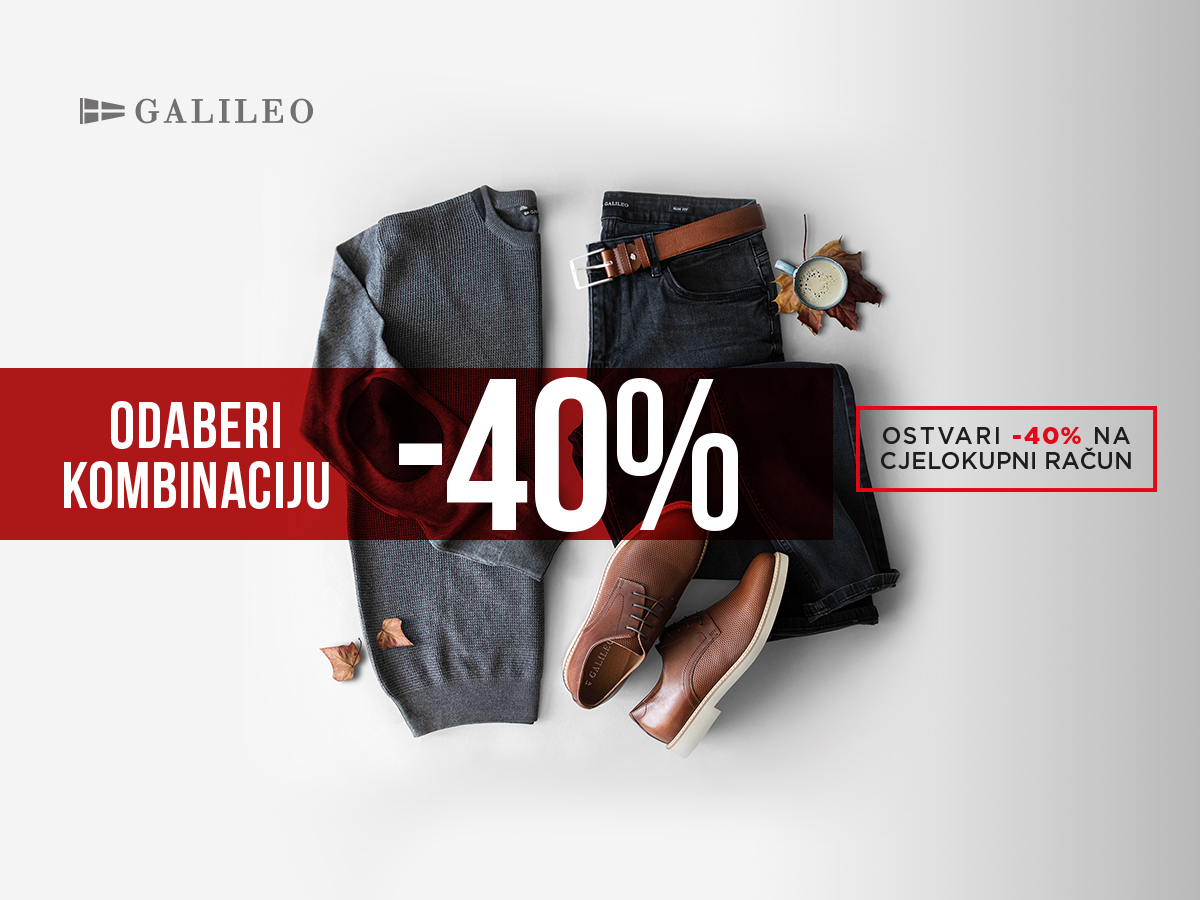 Požuri u Galileo, odaberi jaknu, odijelo, cipele ili druga 3 proizvoda iz glavnih kategorija i ostvari čak 40% POPUSTA na ukupan račun.