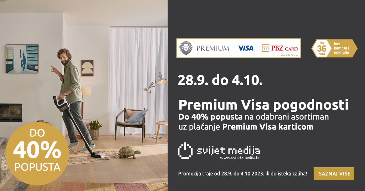 U periodu od 28.9. do 4.10.2023. posjetite webshop ili poslovnice Svijeta medija jer smo za plaćanje Premium Visa karticom omogućili popuste uz mogućnost plaćanja do 36 rata bez kamata i naknada!
