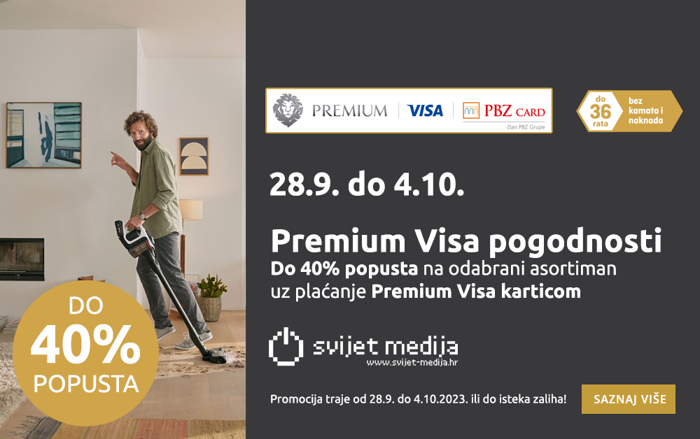 U periodu od 28.9. do 4.10.2023. posjetite webshop ili poslovnice Svijeta medija jer smo za plaćanje Premium Visa karticom omogućili popuste uz mogućnost plaćanja do 36 rata bez kamata i naknada!