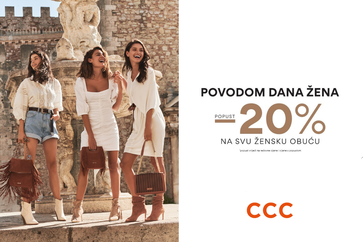 Počasti se jer si fantastična! ožujak 5, 2020 Posebne ponude CCC slavi Dan žena i daruje -20% na svu žensku obuću! Akcija vrijedi od petka, 6.3. do nedjelje 8.3.