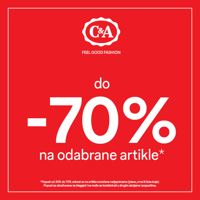Sniženje u C&A trgovinama! lipanj 29, 2020 Novosti, Posebne ponude Pronađite plave, crne ili žute naljepnice i ugrabite svoj omiljeni artikl po sniženoj cijeni do 70%.