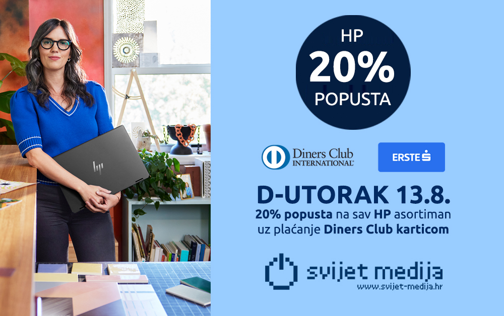 Iskoristite 20% popusta na sav HP asortiman uz plaćanje Diners Club karticom uz mogućnost plaćanja do 36 rata: